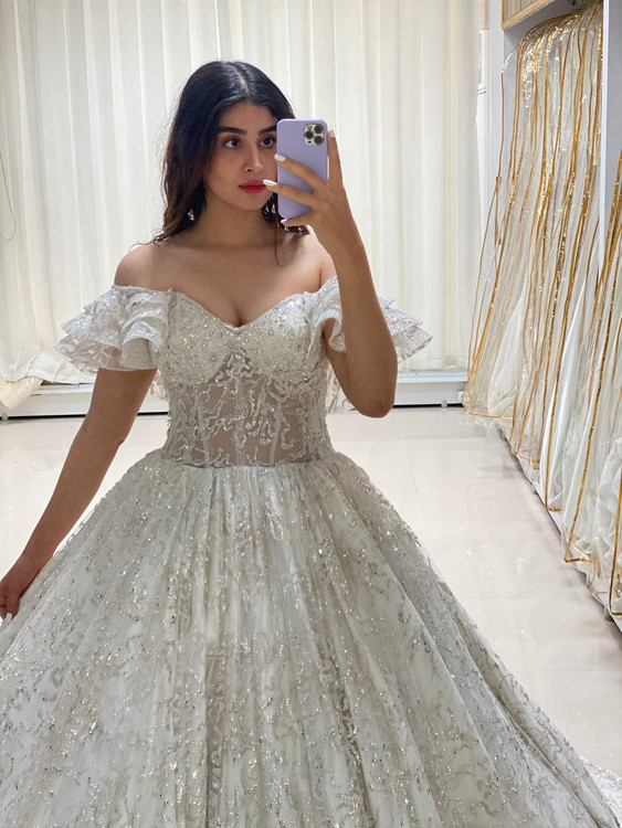 لباس عروس عربی شایندار با یقه دکلته انتخابی ایدهآل برای عروسهایی است که میخواهند در روز عروسی استایلی لوکس، جذاب و منحصر به فرد داشته باشند. طراحی سایندار لباس، فرم بدن را به زیبایی نشان میدهد و یقه دکلته جلوهای مدرن و شیک به بالاتنه میبخشد.
