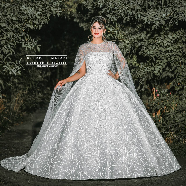 لباس عروس پفی شاین غواسی /حجاب با جنس تور روی پارچه/یقه دکلته /تن پوش دو